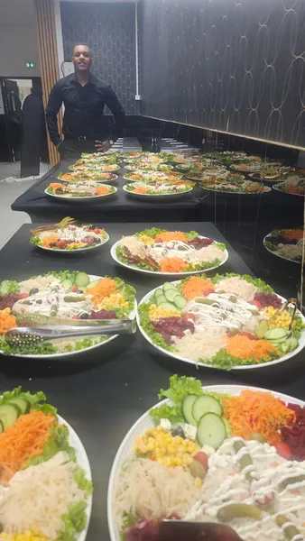 Buffet de mignardises méditerranéennes pour vos événements : mariages, baptêmes, réceptions. Présentation soignée et raffinée. Comprend bricks variés, fricassés, mezze froids, houmous, moutabal, salades orientales. Service complet avec vaisselle et installation. Adapté de 20 à 200 personnes. Traiteur événementiel à Marseille.